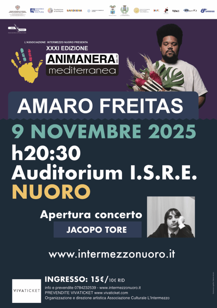 il festival accoglierà il talento visionario del pianista brasiliano Amaro Freitas, in concerto all’Auditorium ISRE il 9 novembre, affiancato dal giovane nuorese Jacopo Tore, promessa del jazz isolano, ospite anche del Cala Gonone Jazz Festival 2025.