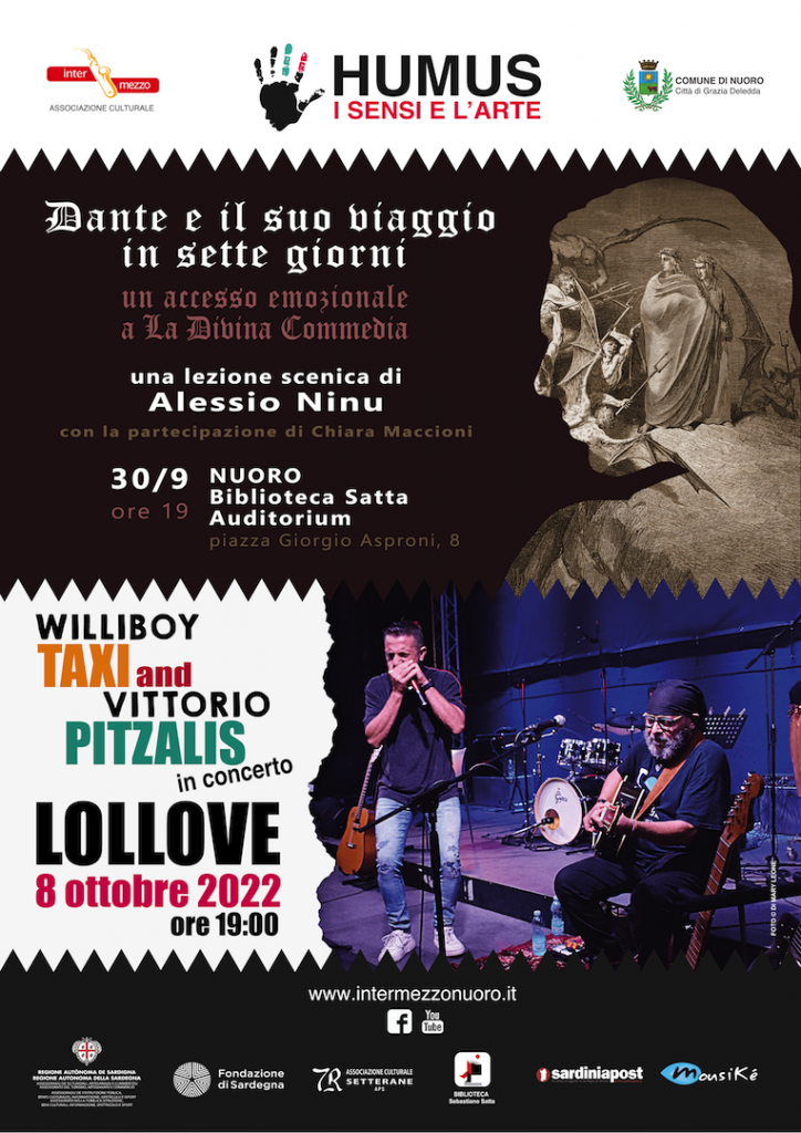 Il 30 settembre, dalle 19,00 nell’auditorium della Biblioteca Satta di Nuoro, il sociologo, autore e attore Alessio Ninu, terrà una lezione scenica basata su “La Divina Commedia”: “Dante e il suo viaggio in sette giorni” accompagnato dall’attrice Chiara Maccioni.